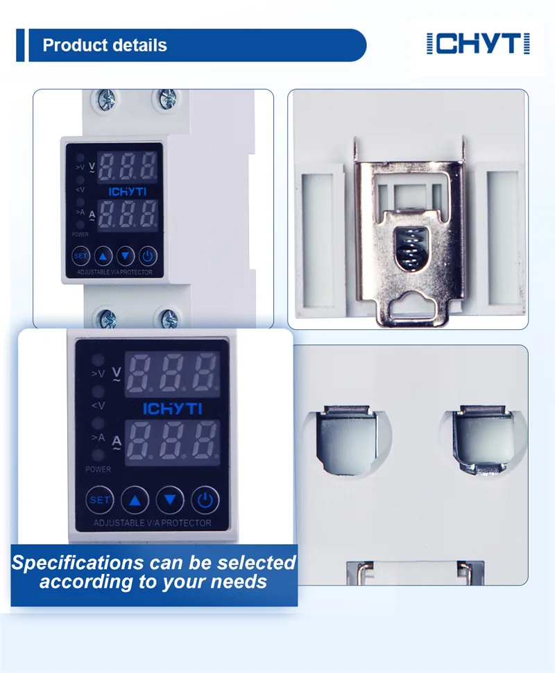 China Factory ICHYTI senaste säljande automatiska spänningsskyddet är ett intelligent skydd som integrerar flera funktioner som överspänningsskydd, underspänningsskydd, överströmsskydd och intelligent skydd. När onormala situationer som överspänning, underspänning eller överström uppstår i kretsen, kan det automatiska spänningsskyddet omedelbart upptäcka och bryta kretsen och därigenom undvika onödiga skador på elektrisk utrustning. På detta sätt kan det automatiska spänningsskyddet fungera som en solid barriär i kretsen, vilket säkerställer en stabil drift av kretsen.
